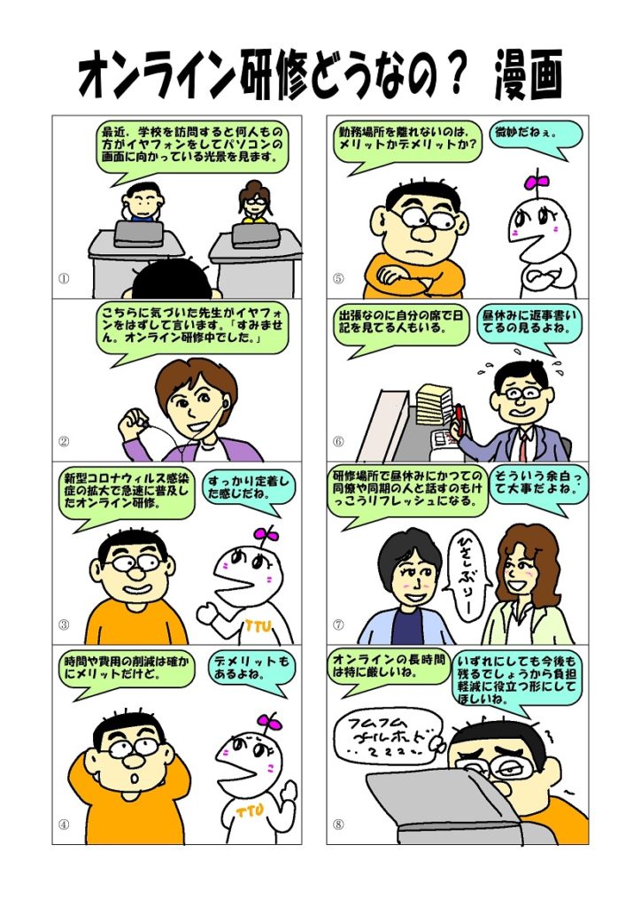 2022年9月30日 / 最終更新日時 : 2022年9月30日 管理人 未分類 オンライン研修どうなの?漫画 教育現場でも定着してきたオンライン研修。あなたにとってはどうですか?オンライン研修について,ちょこっと漫画にしてみました。 Bluesky