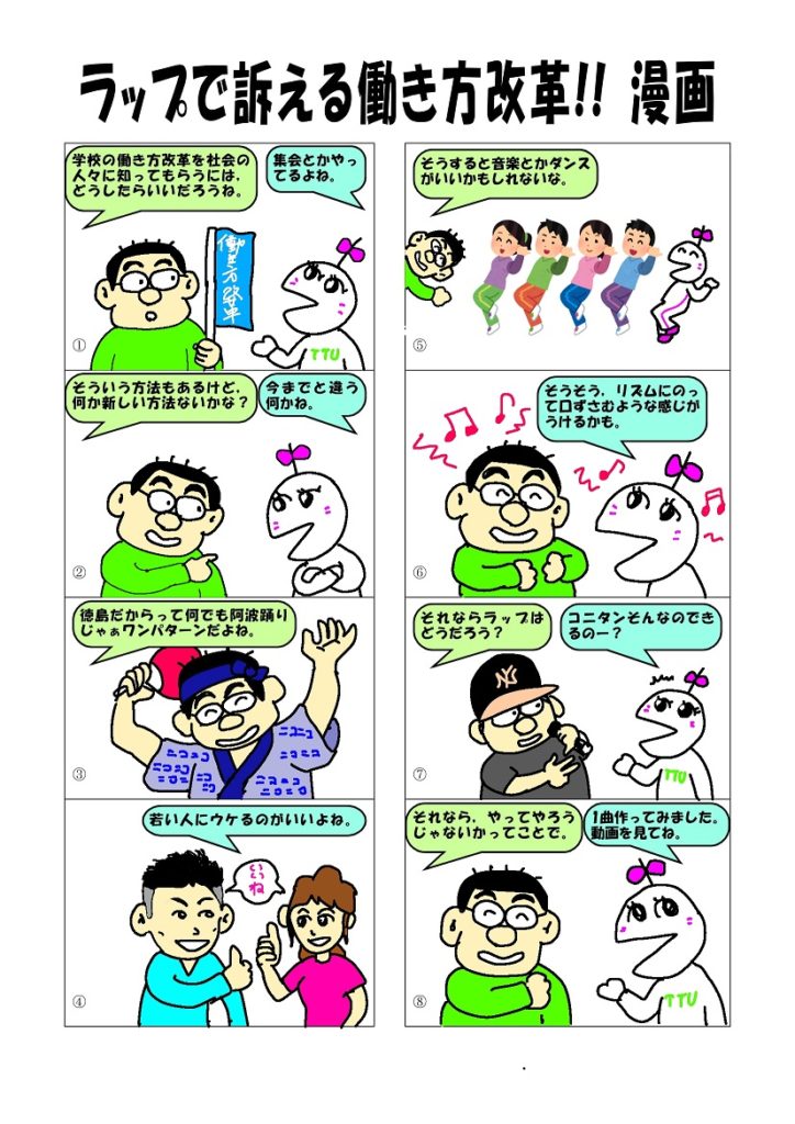 2022年10月4日 / 最終更新日時 : 2022年10月4日 管理人 未分類 ラップで訴える働き方改革!!漫画 学校における働き方改革を世間の人はどう見ているのでしょうか。教員不足により子どもたちの学ぶ権利が保障されない状況が生まれています。このままでは・・・という漫画です。 動画見てね Too busy teachers – YouTube Bluesky