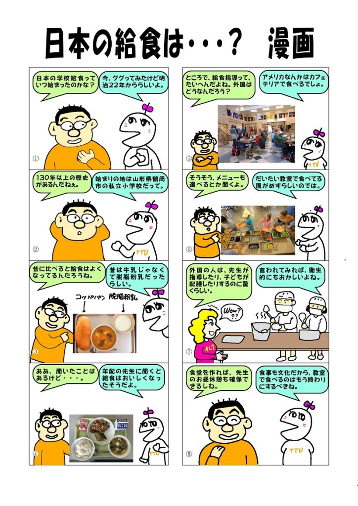 日本の給食は、優れた制度だと思います。しかし,食べる場所が教室というのは国際的にも珍しく,配膳を担任や子どもがするというのもあまり例がないことです。給食指導をするがために、先生たちはお昼の休憩が取れません。そこのところをどうにかしたいですね