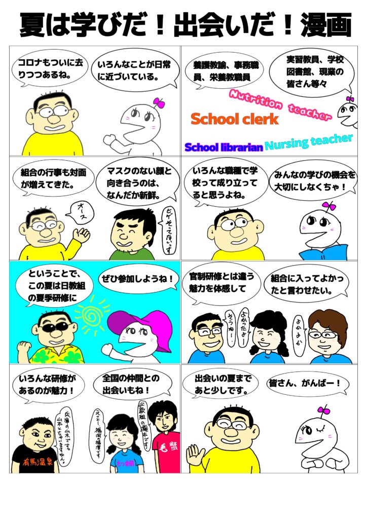 2023年6月13日 / 最終更新日時 : 2023年6月13日 管理人 未分類 夏は学びだ!出会いだ!漫画 新型コロナウィルス感染症も、やっと終わりが見えてきたようです。夏は学びと出会いの時。ということで、漫画にしてみました。いいねボタンを新しくつけたので、よかったら押してくださいね。 Bluesky