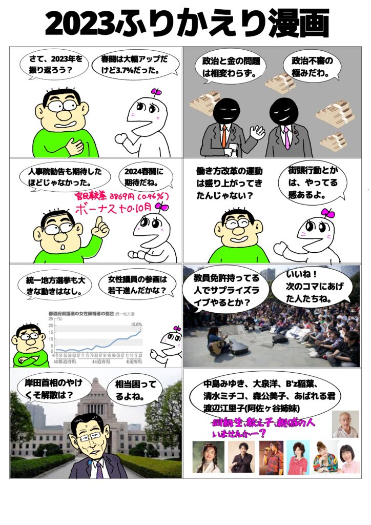 早いもので、2023年もあと10日あまりです。2023年を漫画で振り返ります。2023年1月4日にアップした「2023年を占う 漫画」と合わせてみていただくと占いが当たっていたかご確認いただけます。