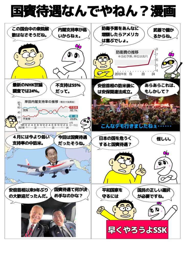 2024年6月7日 / 最終更新日時 : 2024年6月7日 管理人 未分類 国賓待遇なんでやねん?漫画 岸田首相は今年4月に国賓待遇で訪米しました。バイデン大統領と大統領専用車内で撮られた写真が報道されていましたね。なんで9年ぶりの国賓待遇だったのかを漫画にしてみました。 Bluesky