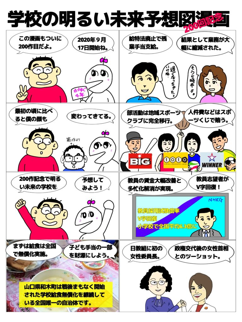 2024年6月9日 / 最終更新日時 : 2024年6月9日 管理人 未分類 学校の明るい未来予想図 漫画 ついに漫画の掲載が200作目となりました。そのお祝いに「学校の明るい未来予想図 200作目記念」をアップします。一つずつ現実にしていきたいものですね。 Bluesky