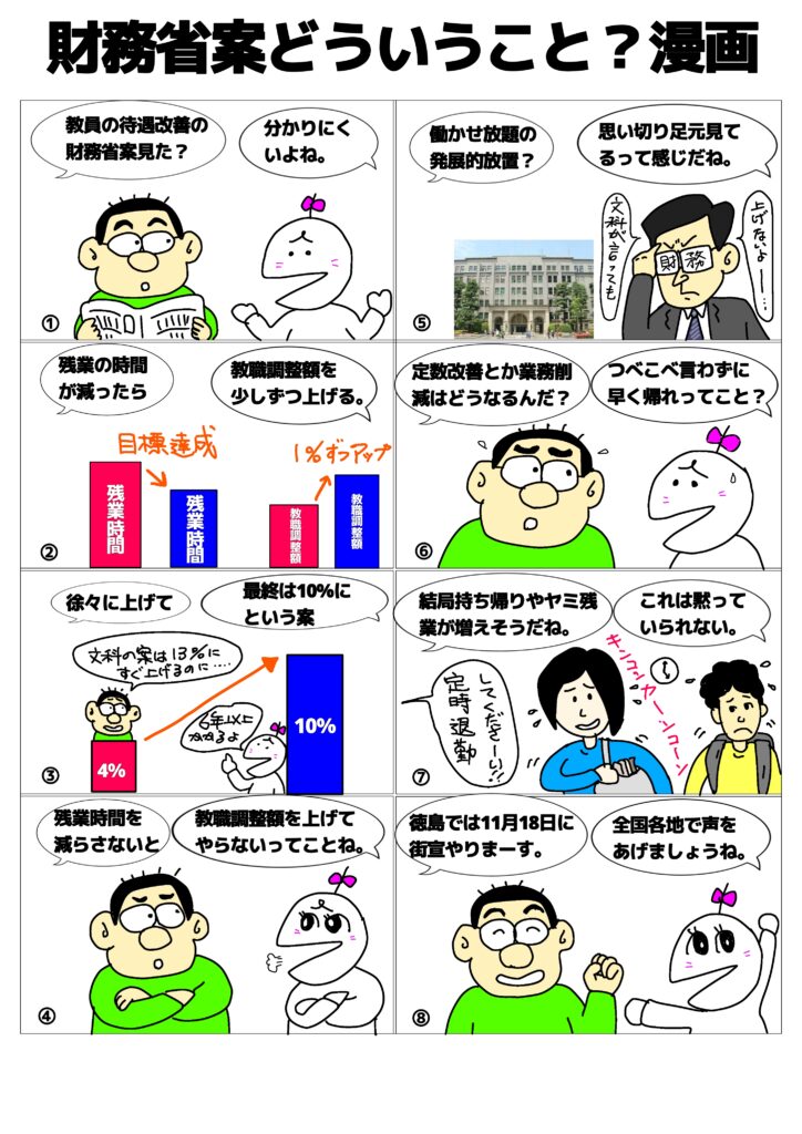 2024年11月12日 / 最終更新日時 : 2024年11月12日 管理人 未分類 財務省案どういうこと?漫画 教員の待遇改善のニュースが続いています。文科省と財務省で明らかに違います。財務省案はわかりにくいですねという漫画です。 Bluesky
