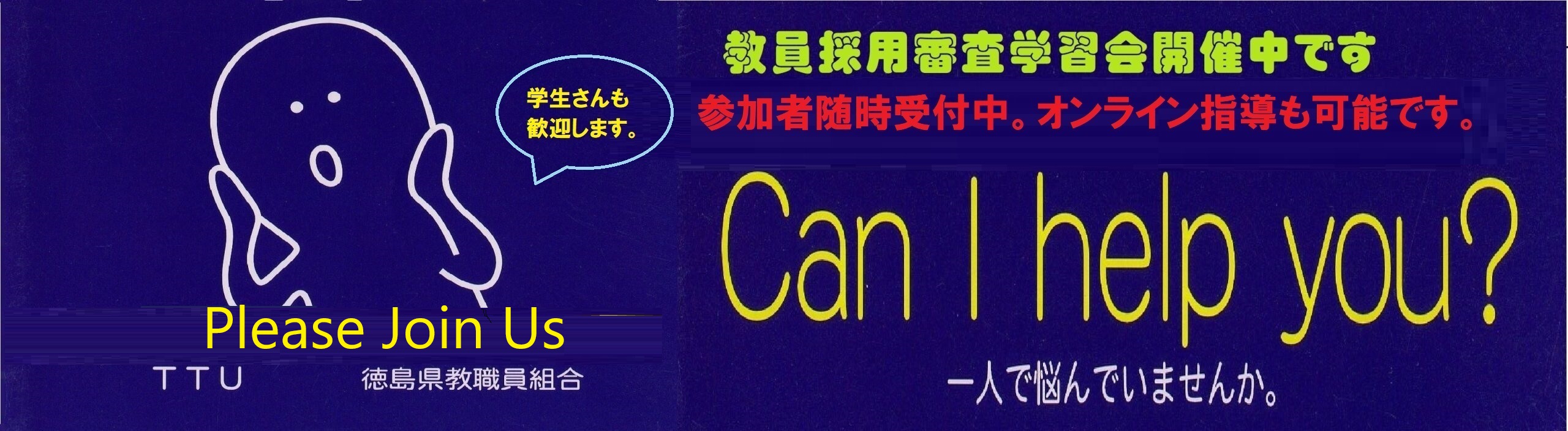 徳島県教組では教員採用審査学習会を開いています。参加者一人ひとりのニーズに合わせて指導いたします。教育会館に来れない人にもオンライン学習会を随時受け付けています。